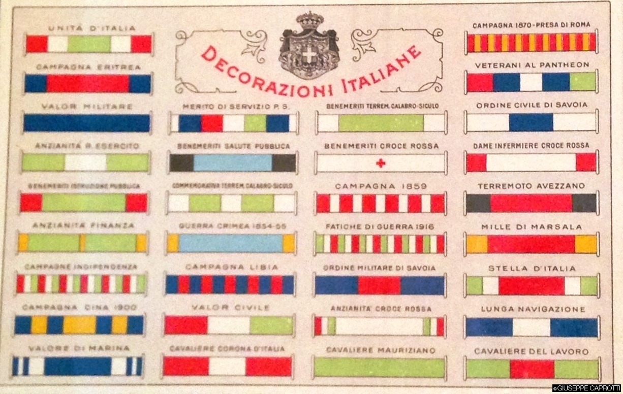 ….Il nastro delle decorazioni era di seta, composto di cinque bande, tre rosse e due nere.