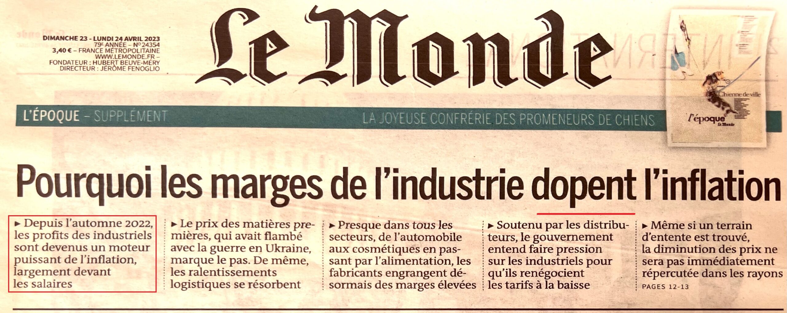 - il titolo che io ho ripreso “Perchè i margini dell’industria dopano l’inflazione” (Le Monde).