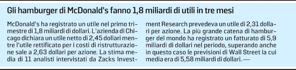 E perfino Mc Donald’s che – come le altre aziende – ne ha ben donde, basta leggere l’articolo che segue.
