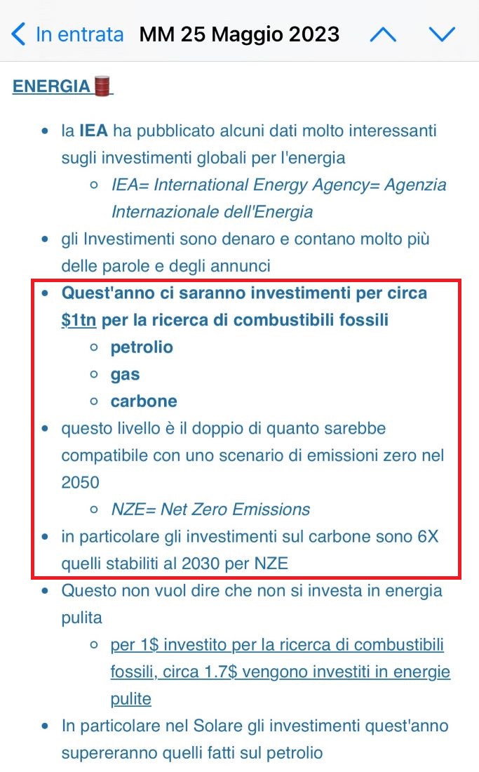 gli investimenti sul carbone – ad esempio – saranno sei volte superiori a quelli stabiliti per portare le emissioni di CO2 a zero nel 2030 (NZE: Net Zero Emissions, fonte : Inglobando).