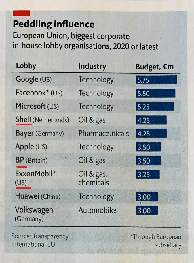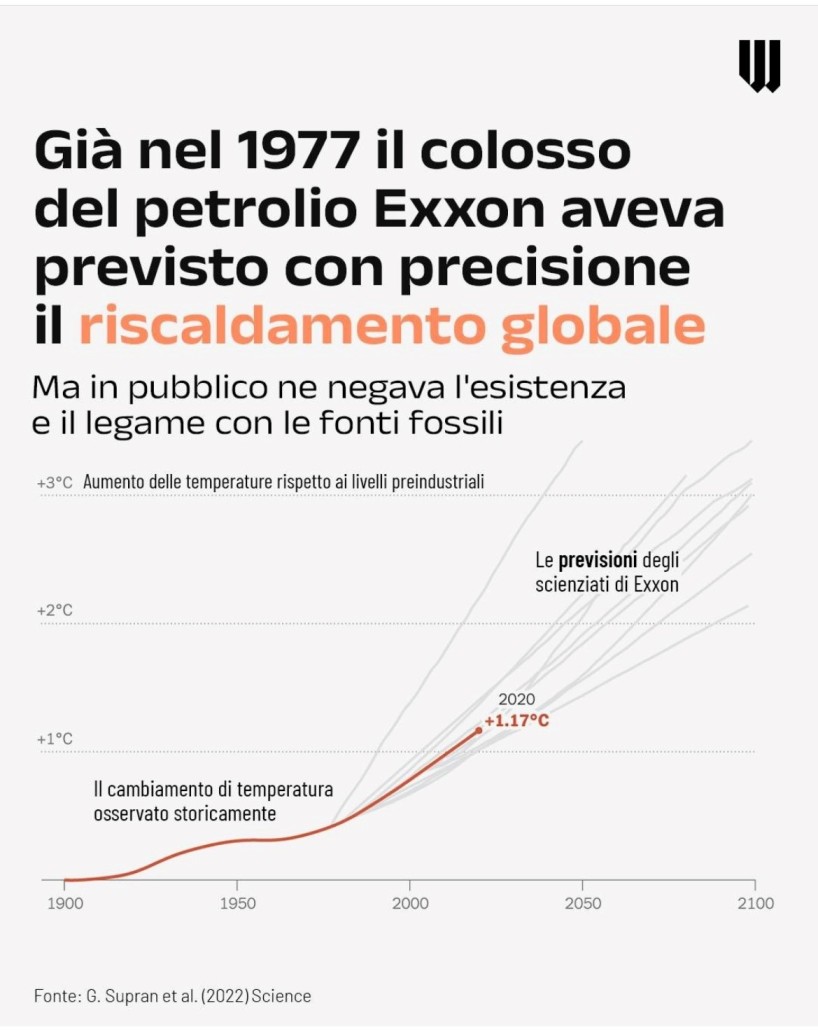 Ovviamente tutti questi soldi servono anche a fare lobbying : Exxon, per anni, ha negato il riscaldamento climatico, per poi ammettere che ne era a conoscenza dal 1977.