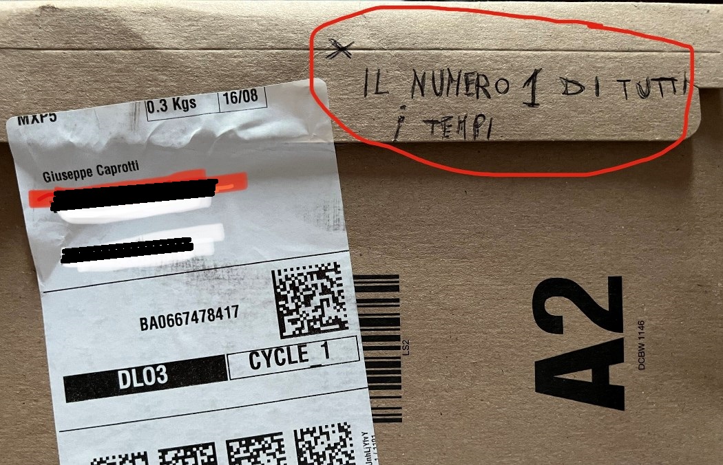 Un corriere di Amazon mi ha recapitato questa busta, scrivendovi: