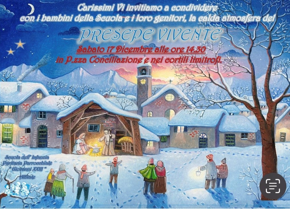 E’ una tradizione che dura da anni : i bambini della scuola materna di Albiate, prima di Natale, inscenano un presepe vivente in vari luoghi del paese.