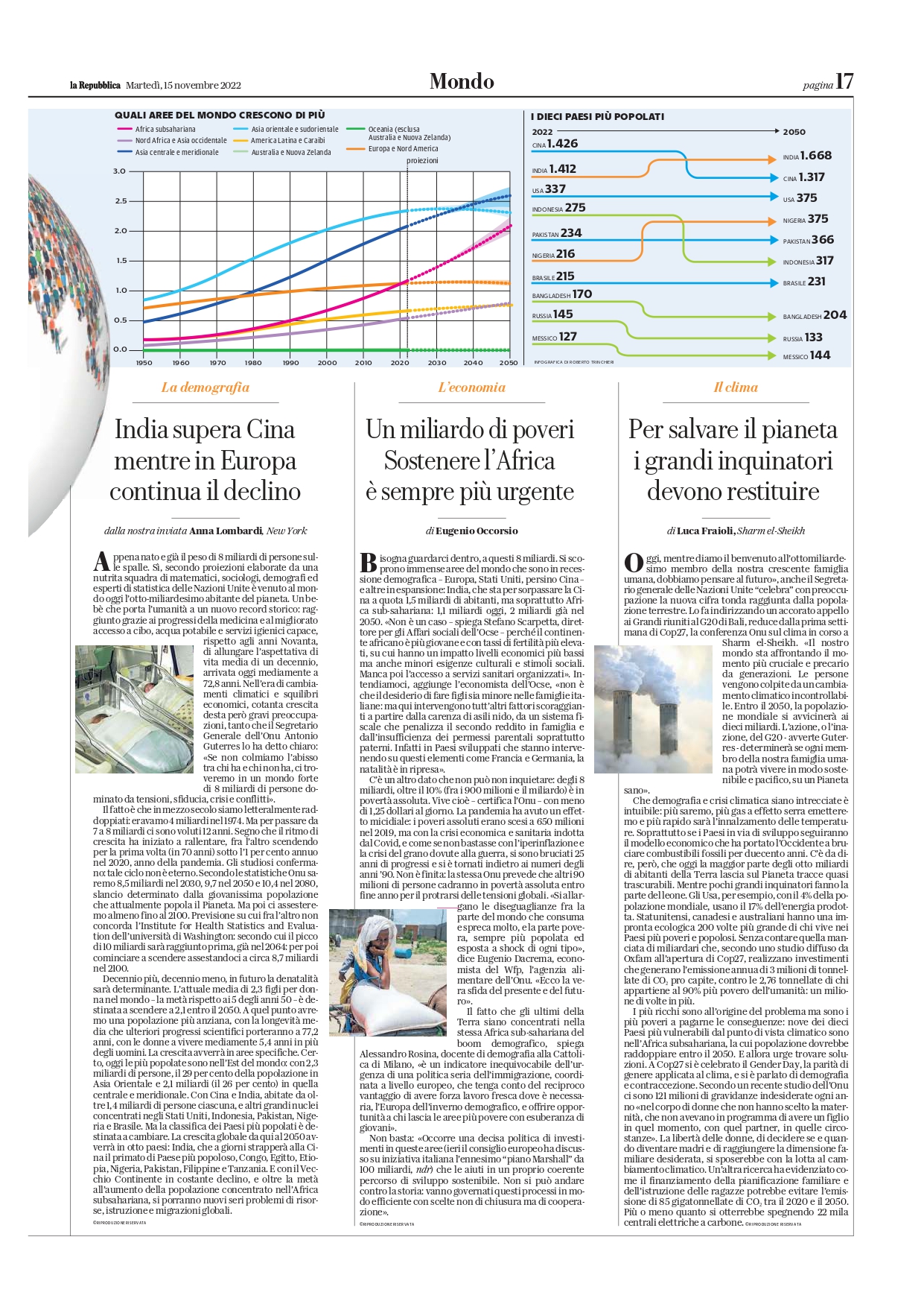 Quasi in contemporanea alla COP 27 è uscita la notizia che siamo 8 miliardi sulla terra.