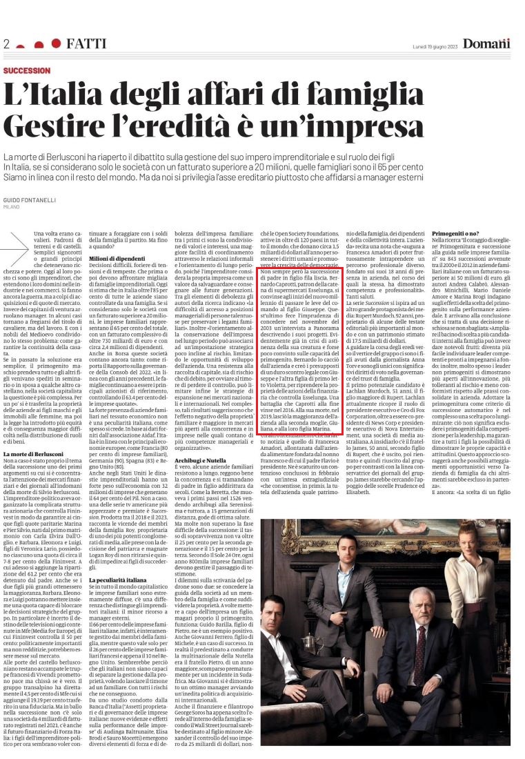 - Sui rapporti con mio padre tutto era chiaro fin dal 2000: quando mi nominò A.D. non ci parlavamo già più ma non potevo certo essere io a confermarlo a Panorama.