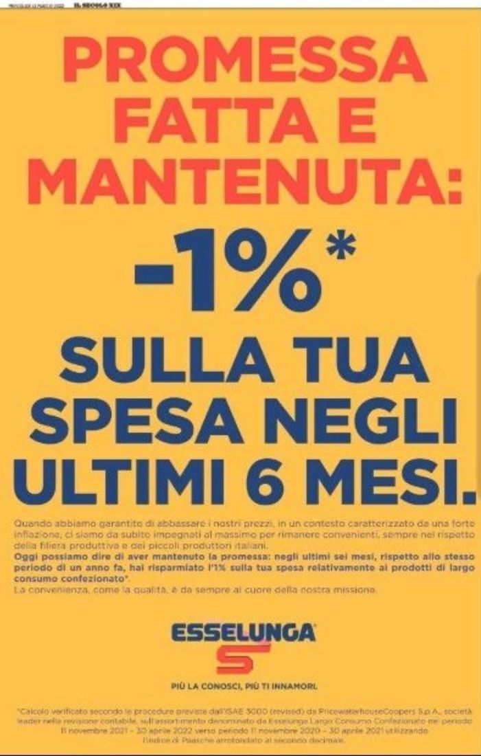 Le mie iniziative sul fronte della lotta all’inflazione e della convenienza , ad esempio, sono state imitate da Esselunga, nel 2022, 19 anni dopo la mia.