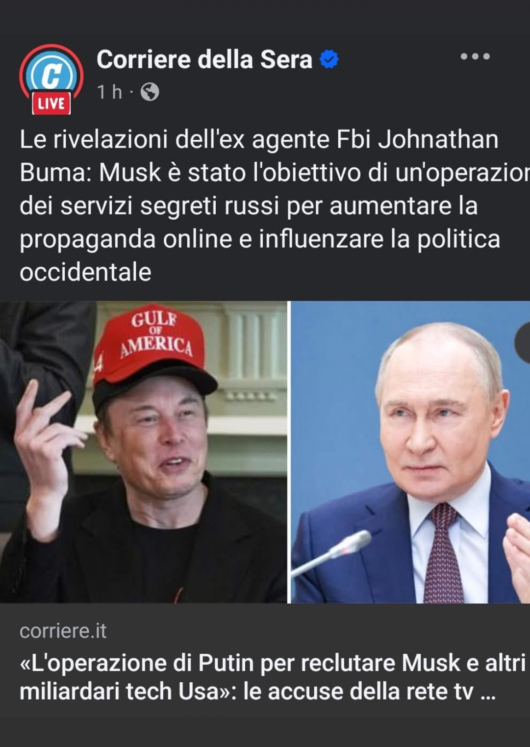 - la Russia è un pericolo poichè internet è ormai, anche da noi, il principale mezzo con il quale cittadini si informano e le interferenze ed i condizionamenti, come nel caso “Tik Tok in Romania”, possono essere molteplici. E’ il caso anche di X, accusata di favorire gli estremisti MAGA ed i russi. Leggi anche Rapporto Ue, 90 Paesi nel mirino delle fake news russe. Social X bacino di disinformazione, colpito voto europeo. E nel nuovo pacchetto di sanzioni alla Russia 20 entità saranno sottoposte a misure interdittive (Repubblica 15 maggio 2025) e Oltre 3 milioni di articoli pro Russia hanno infettato i chatbot NewsGuard, infiltrati da una rete di disinformazione chiamata Pravda.