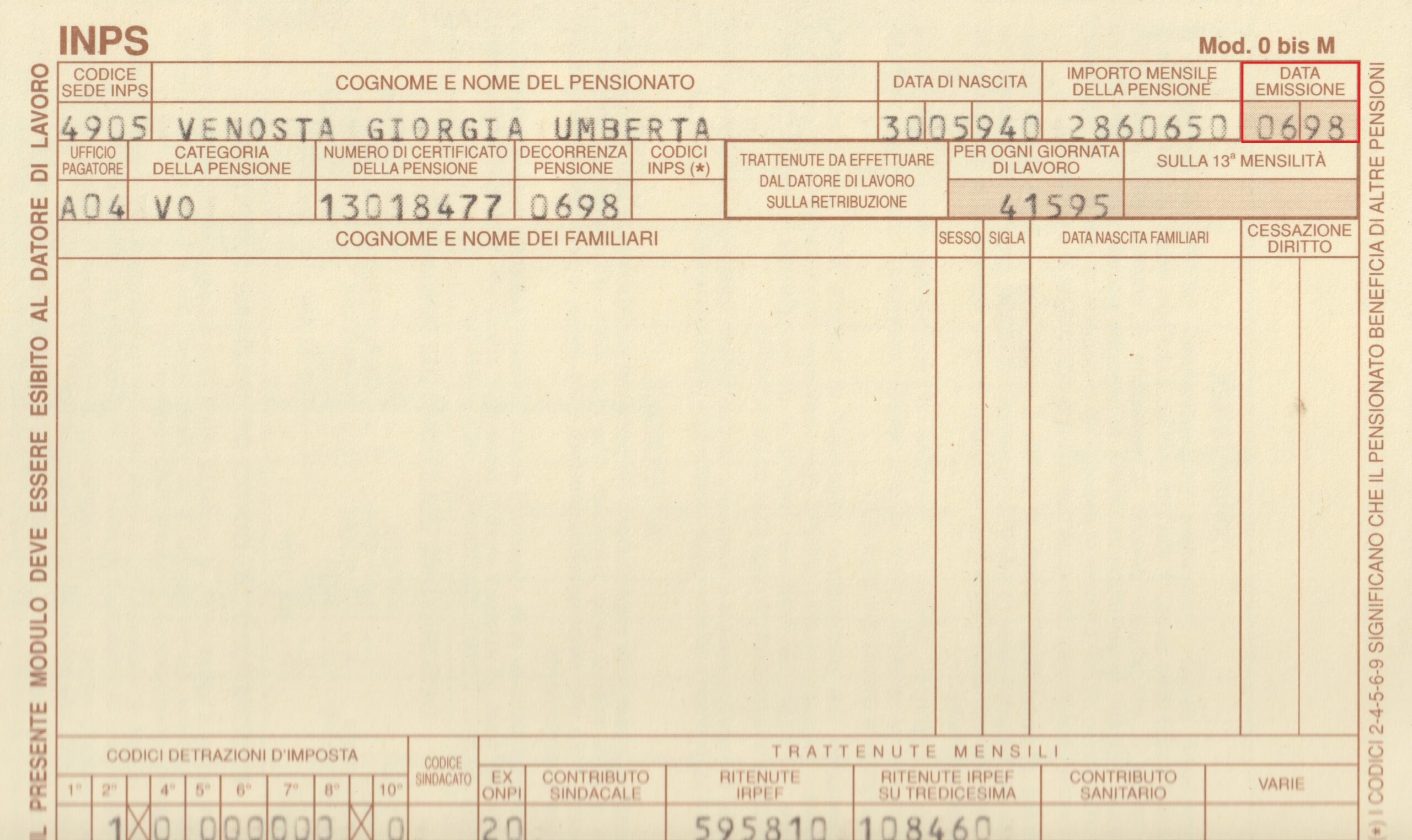 Come si può vedere sotto mia madre ha iniziato a lavorare nel 1964 ed è andata in pensione nel 1998, dopo 35 anni di “onorato servizio”.