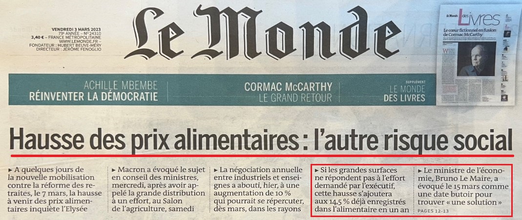 P.s.: il quadro inflazionistico francese è stato successivamente riconfermato da Le Monde del 17 marzo 2023 :