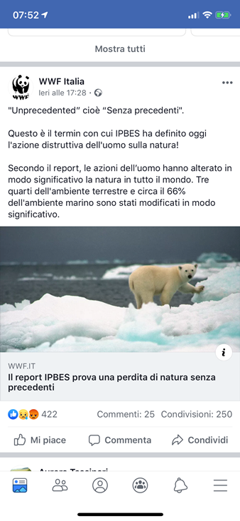 IPBES ha recente dichiarato : “un miliardo di specie a rischio”