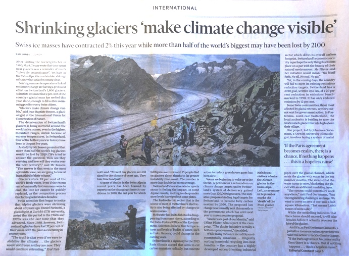 Per questo vi propongo il riassunto di un articolo del Financial Times sui ghiacciai svizzeri: