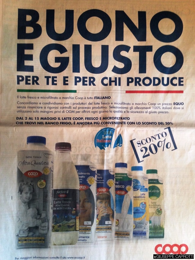 “concordiamo e condividiamo con i produttori del latte fresco microfiltrato a marchio Coop un prezzo EQUO…”