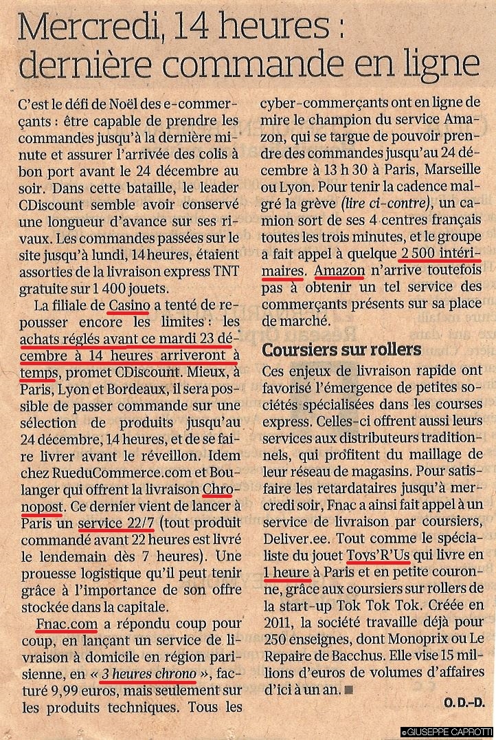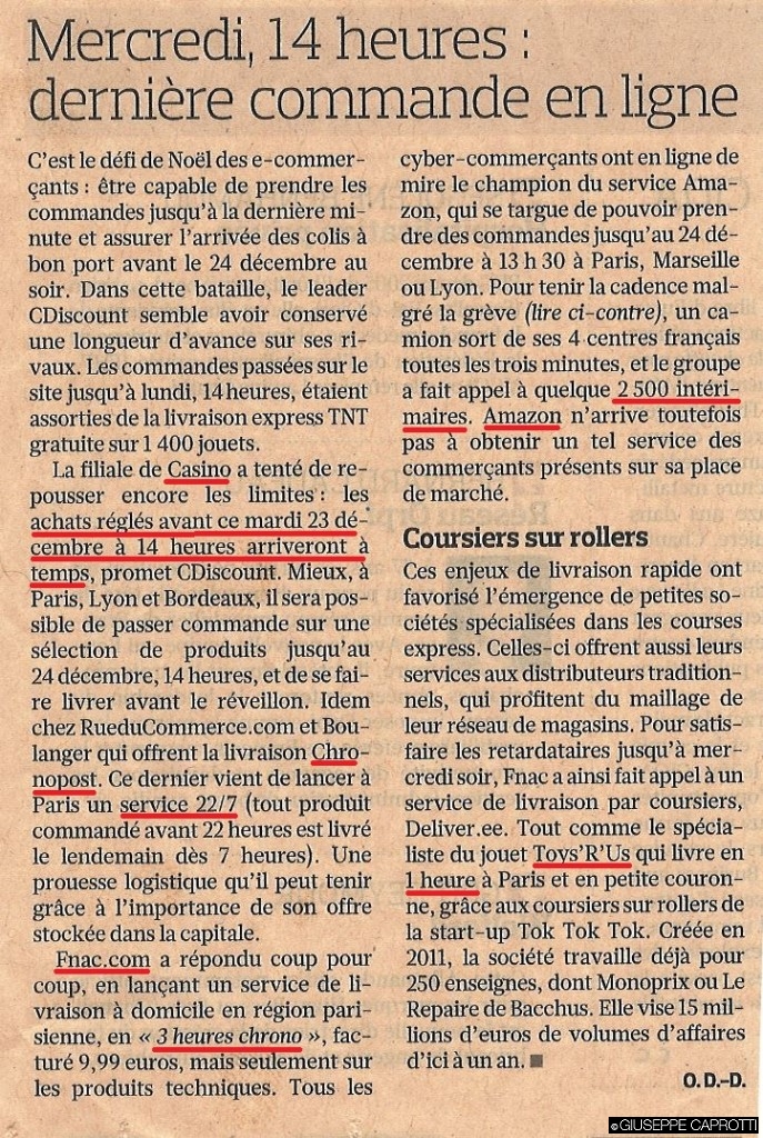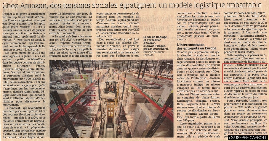 In questo contesto la logistica conta moltissimo e Amazon, oltre ad aver inserito 2500 interinali nei suoi 4 magazzini francesi per il periodo natalizio, prepara la merce entro due ore dall’ordine della clientela