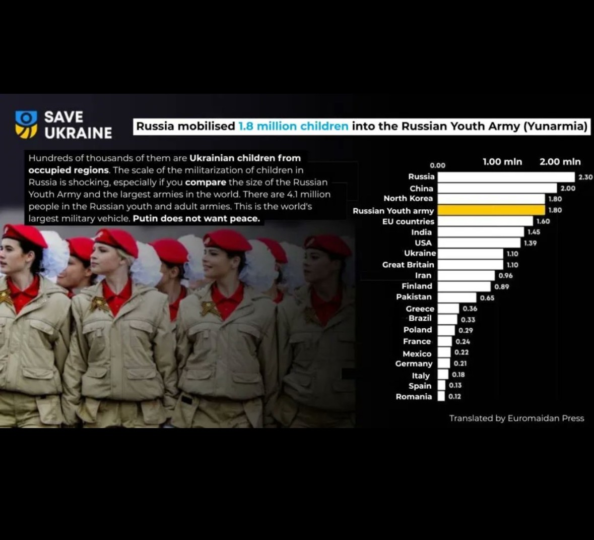 Russia has mobilised 1,8 million children into Russian Youth Army (Yunarmia).