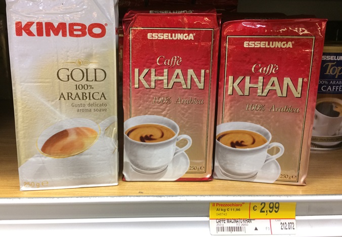 I marchi di fantasia del caffè (come Khan, nella foto sotto ) oggi non sono più prodotti da Esselunga ma dall’Industria di marca.