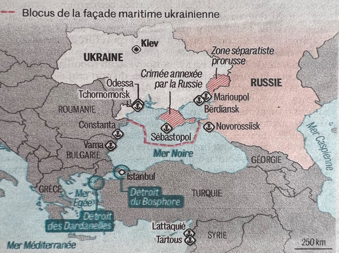 Sotto : il blocco dei porti del Mar Nero nel 2022 (Le Monde).