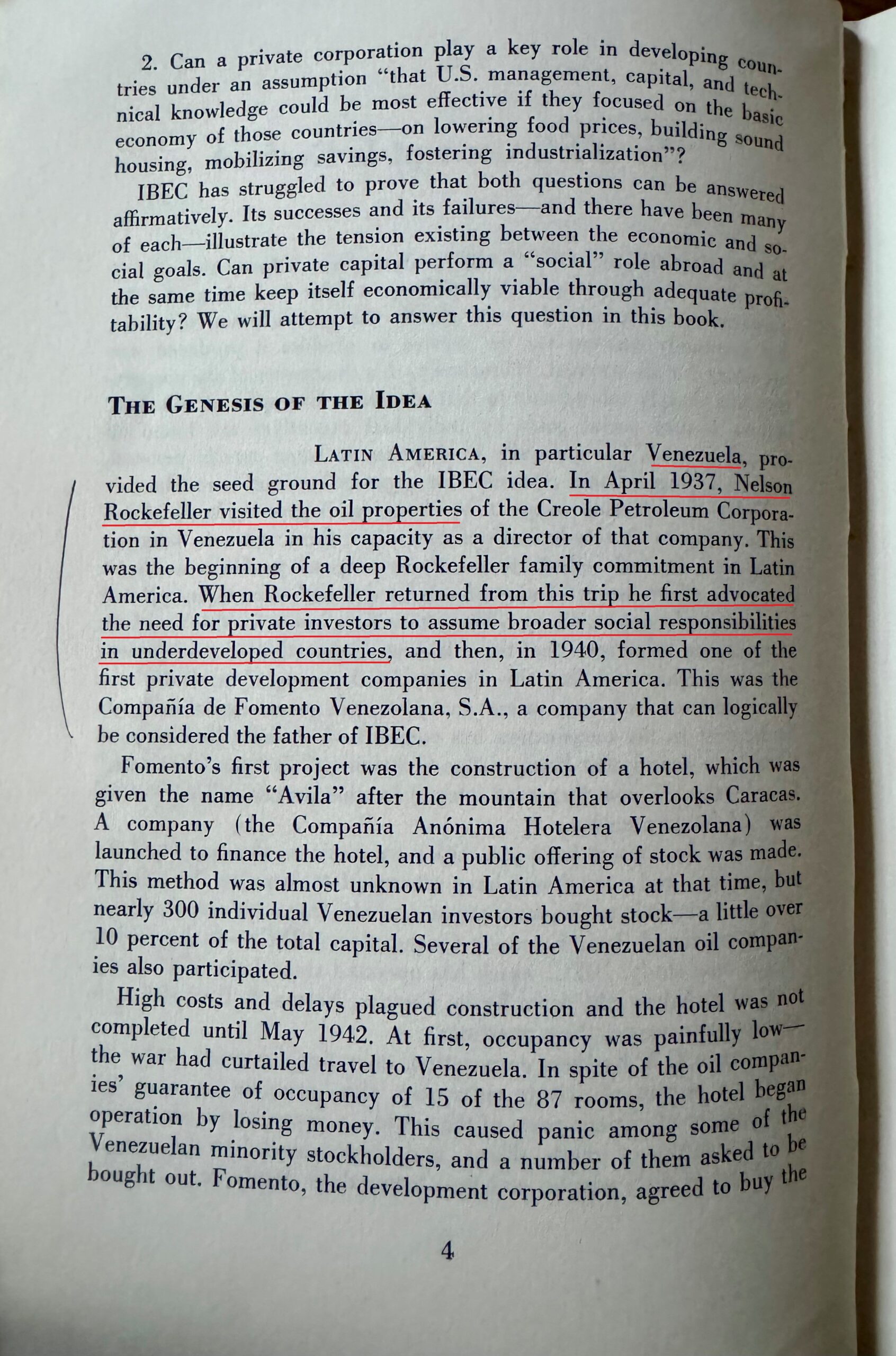 Broehl, manager di Rockefeller e professore di economia al Darmouth College, spiega nel suo libro come il pensiero di Nelson Rockefeller si forgiò in Venezuela nel 1937.