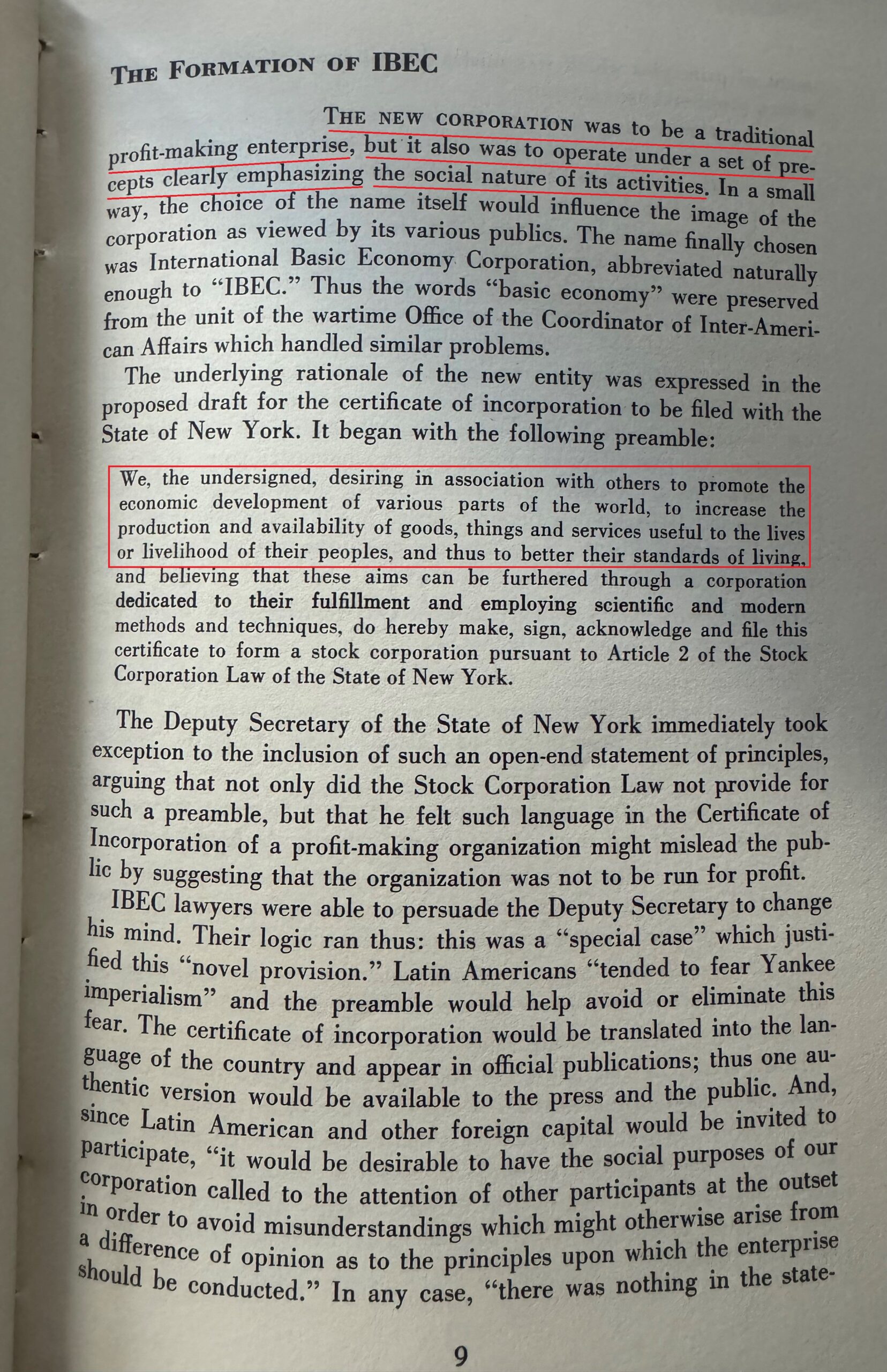 Sotto : la nascita della IBEC, da : The International Basic Economy Corporation, di Wayne G. Broehl Jr.