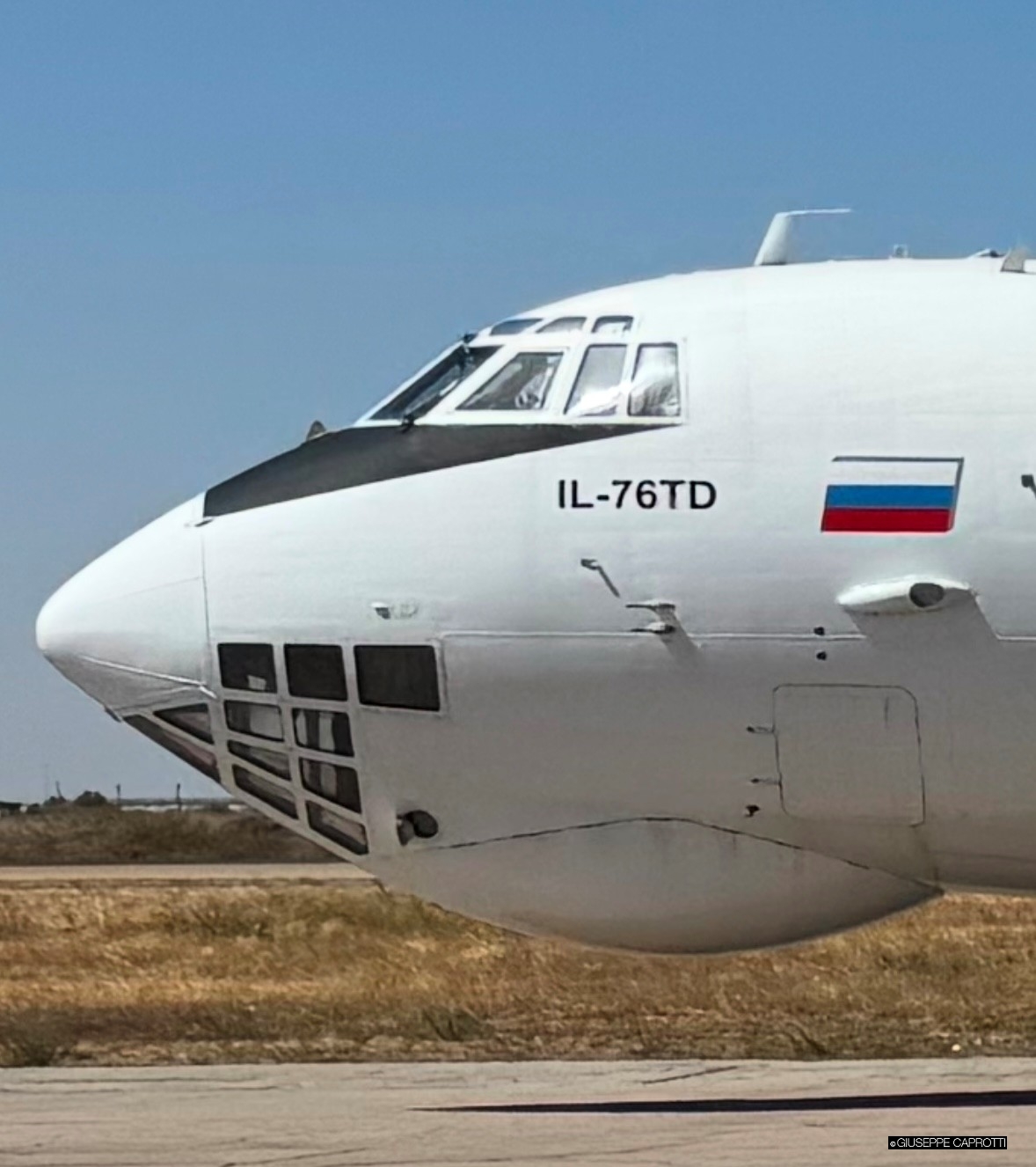 Sotto : areo russo Ilyushin 76 TD a N’Djamena, Ciad (2025)