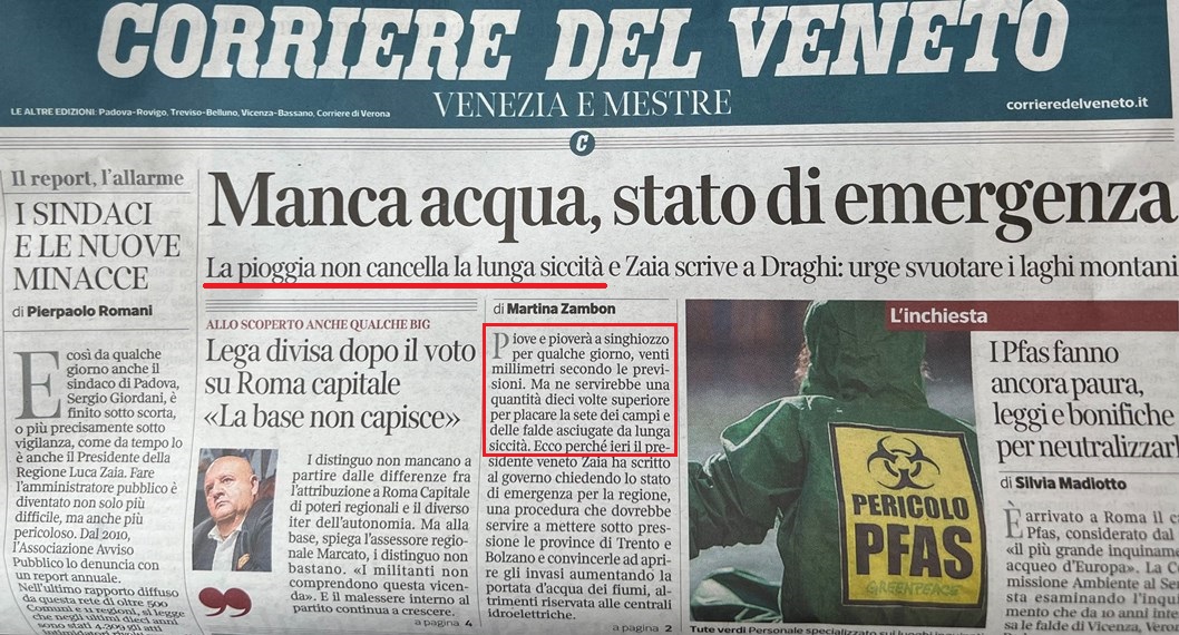 - la conferma arriva dal Piemonte : “La pioggia non compensa la siccità”.