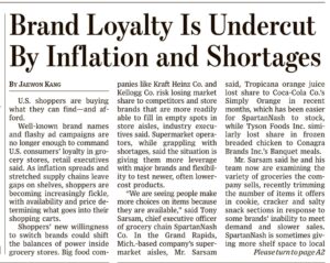 Il cliente USA, davanti a inflazione e prodotti mancanti (la situazione è stata innescata dal covid), decide sempre di più di comprare “altre marche” rispetto a leader come Kraft, Kellogg’s o Tyson (carne).