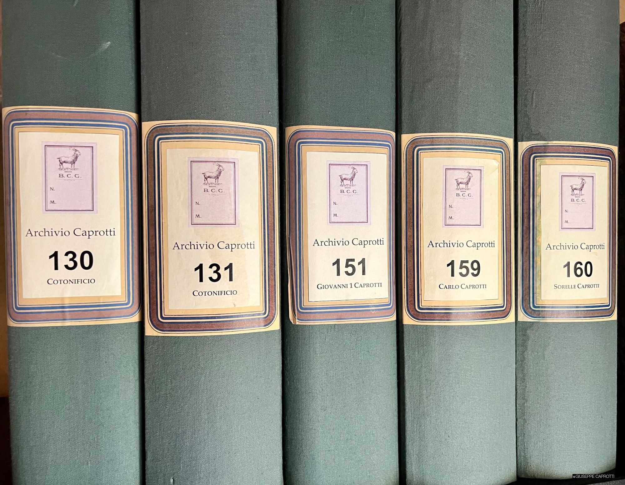Sopra: archivi ad Albiate (B.C.G. significa Bernardo Caprotti di Giuseppe e si riferisce all’azienda tessile)