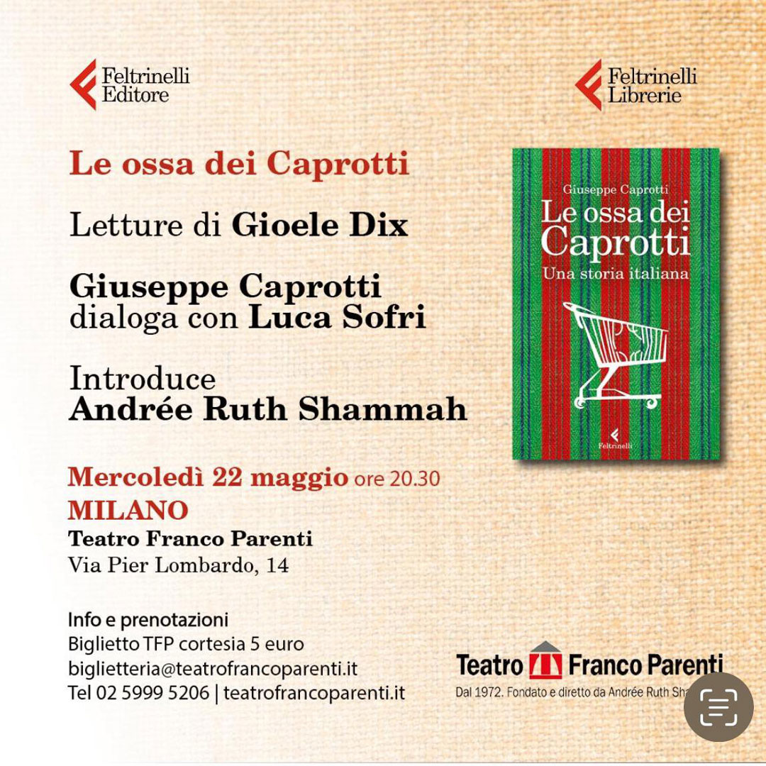 Con l’autore Andrée Ruth Shammah e Luca Sofri, letture di Gioele Dix. Meroledì al Parenti, via Pier Lombardo 14, ore 20.30.
