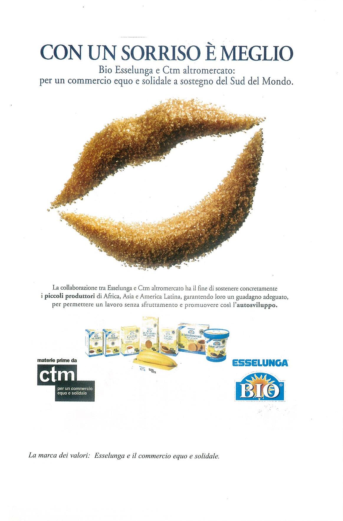 Sotto la gamma dei prodotti equo solidali Esselunga bio CTM Altromercato nel 2002: tè, caffè, zucchero, cacao, minibiscotti, gelato, banane.Giogio Dal Fiume lo trovate a pagina 188 del mio libro.