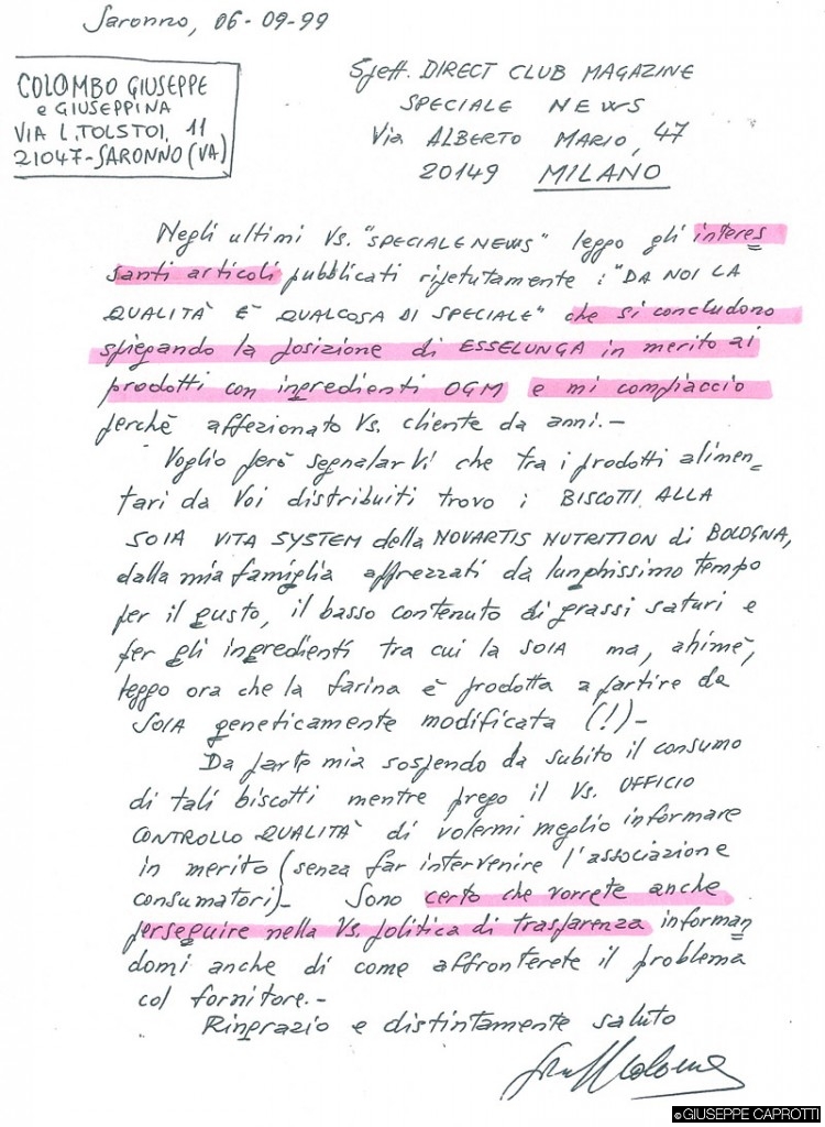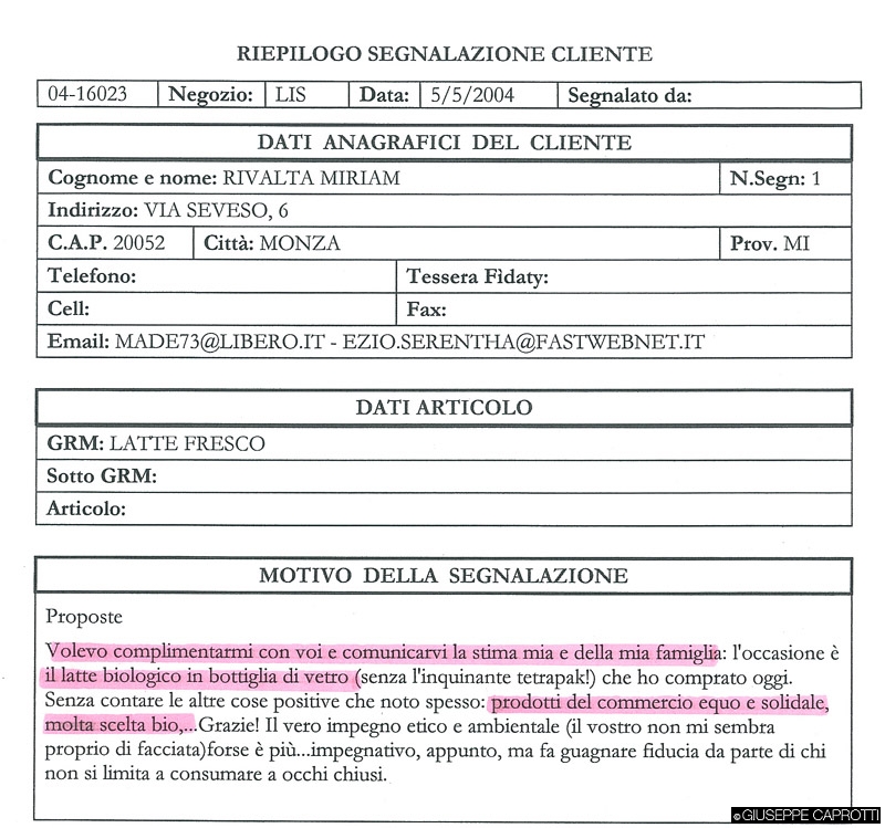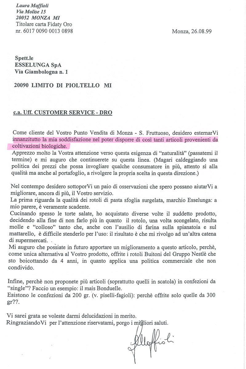 Lettere di complimenti dai clienti, dal 1999 al 2003
