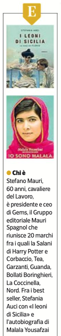 Corriere Economia 30 agosto 2021. Nota : sono consigliere del gruppo Messaggerie, la holding che controlla Gems.