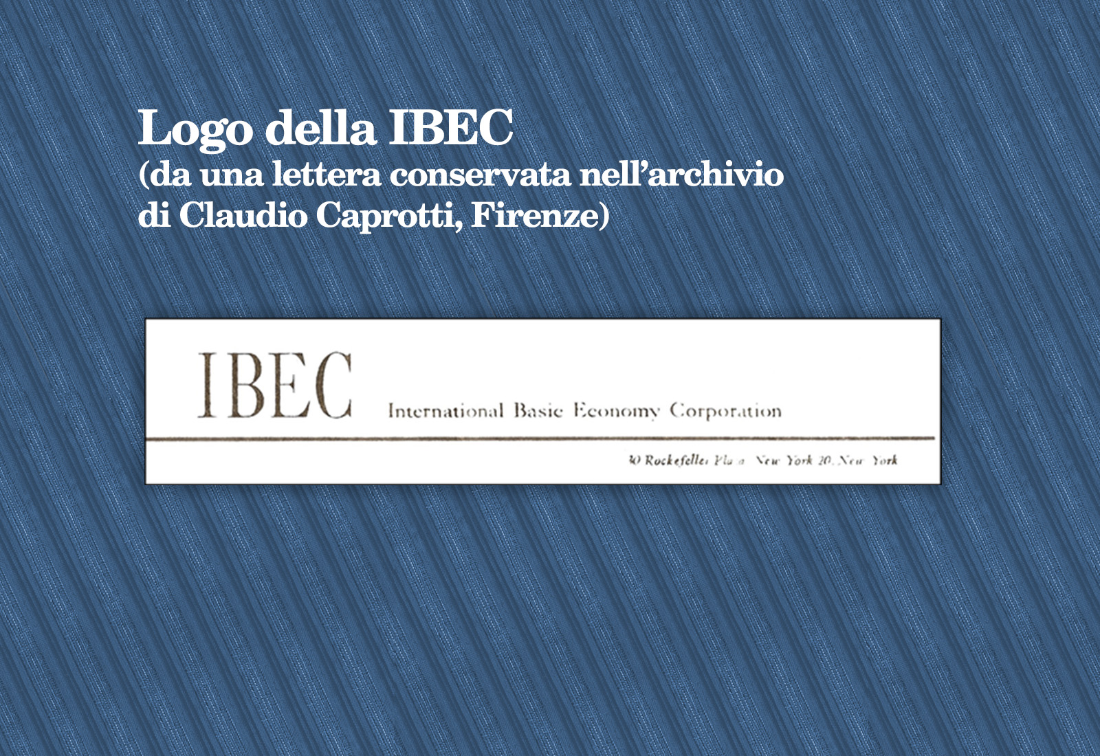Nel 1947 Nelson Rockefeller fonda la IBEC, un’azienda privata focalizzata sul miglioramento delle economie di base dei paesi meno sviluppati, in particolare quelli dell’America Latina: una “compagnia con una missione”, come intitolerà il libro di K. D. Durr. Rockefeller nutre per essi un’autentica passione fin da quando, negli anni Trenta, trascorre in Venezuela cinque anni come direttore della Creole Petroleum Company, sussidiaria della Standard Oil fondata da suo nonno John.