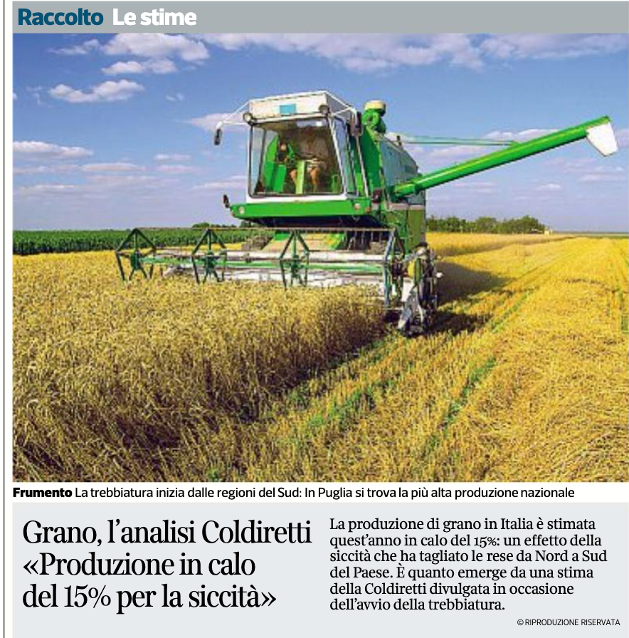 Sotto : le stime di Coldiretti in merito alla siccità che sta colpendo l’italia.
