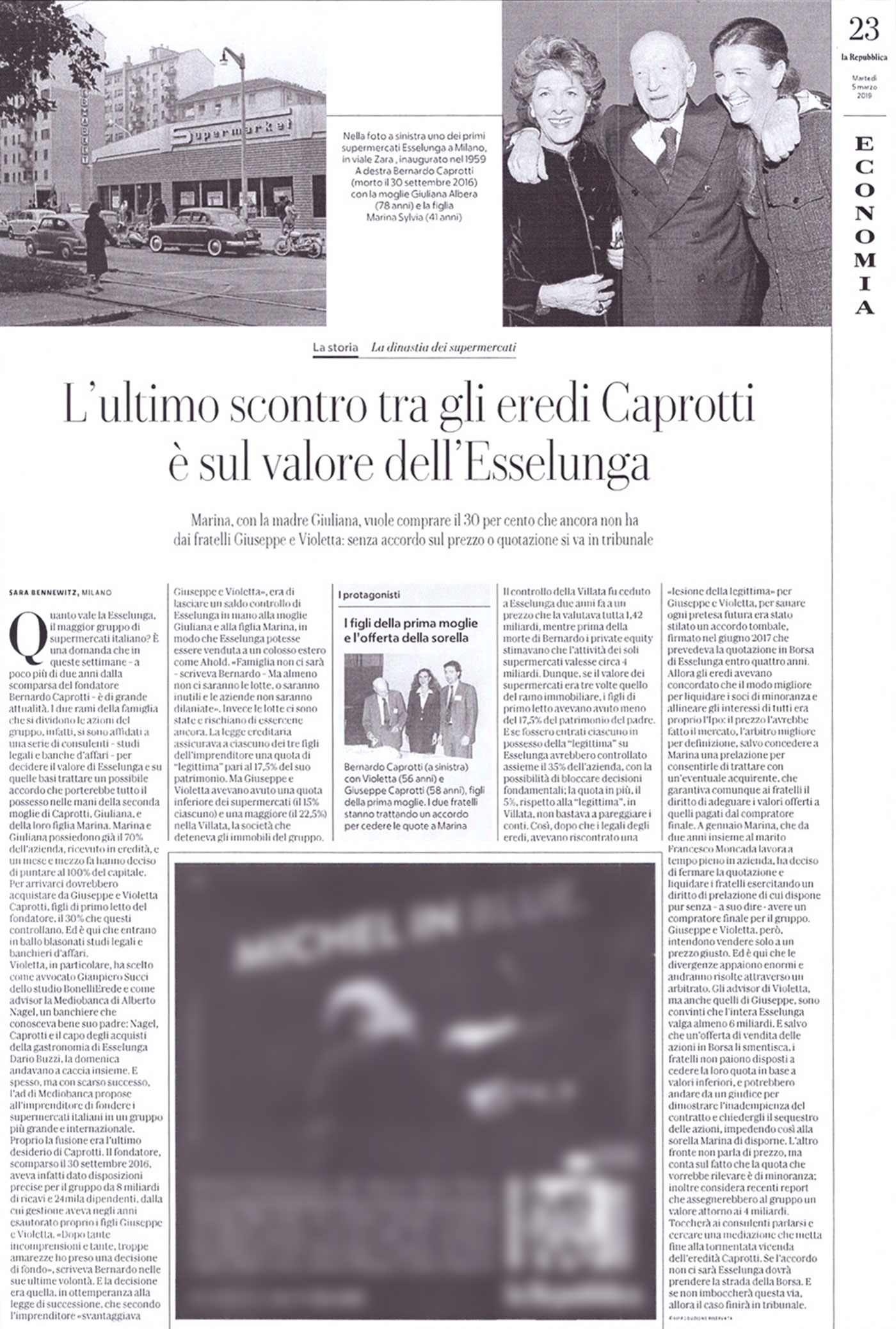 Così, dopo che i legali degli eredi avevano riscontrato una “lesione della legittima” per Giuseppe e Violetta, per sanare ogni pretesa futura era stato stilato un accordo tombale, firmato nel giugno 2017 che prevedeva la quotazione in Borsa di Esselunga entro quattro anni. Allora gli eredi avevano concordato che il modo migliore per liquidare i soci di minoranza e allineare gli interessi di tutti era proprio l’Ipo: il prezzo l’avrebbe fatto il mercato, l’arbitro migliore per definizione, salvo concedere a Marina una prelazione per consentirle di trattare con un eventuale acquirente, che garantiva comunque ai fratelli il diritto di adeguare i valori offerti a quelli pagati dal compratore finale.