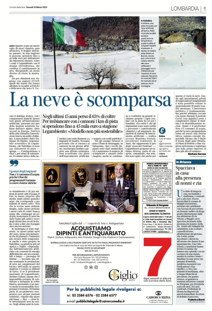 Da “La neve è scomparsa” del Corriere della Sera del 16 marzo 2023.