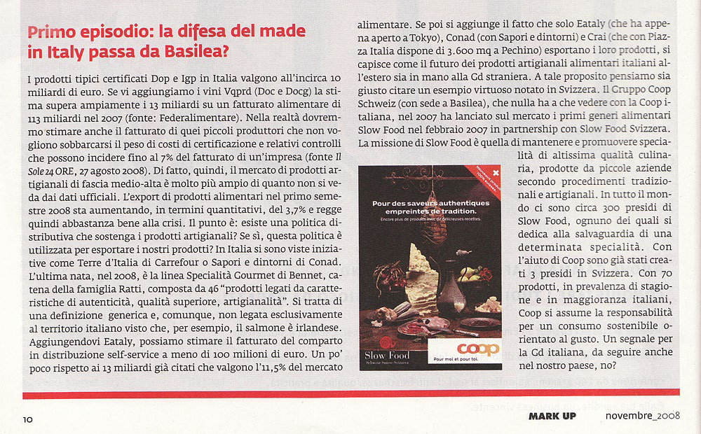 Con l’aiuto di Coop sono già stati creati 3 presidi in Svizzera. Con 70 prodotti, in prevalenza di stagione e in maggioranza italiani, Coop si assume la responsabilità per un consumo sostenibile orientato al gusto. Un segnale per la Gd italiana, da seguire anche nel nostro paese, no?