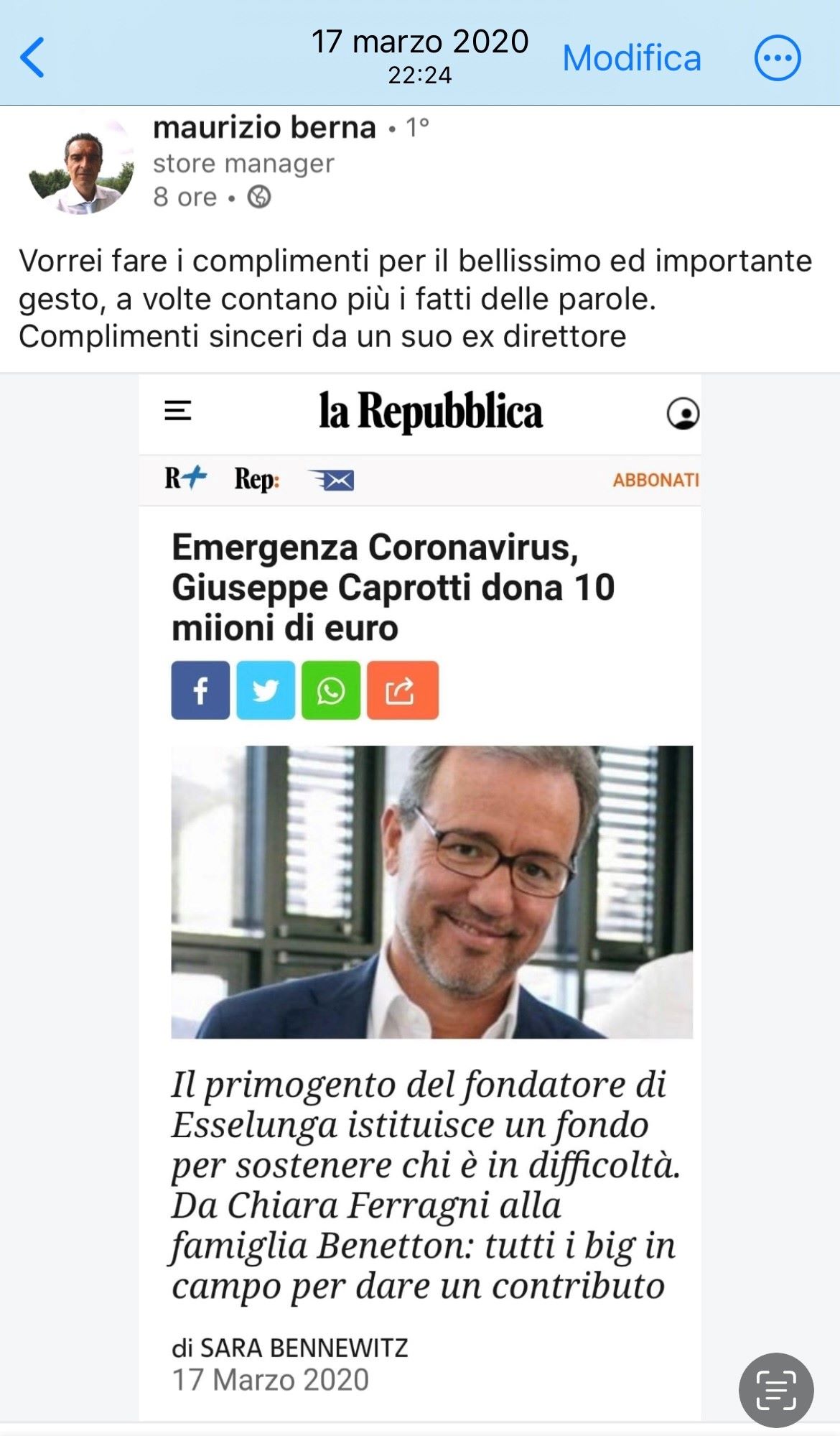 Complimenti sinceri da un suo ex direttore