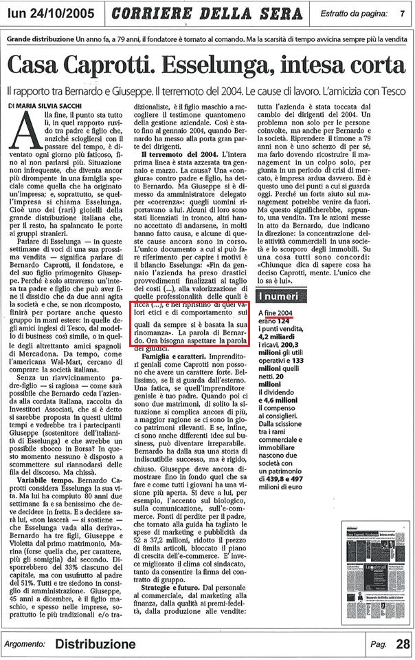 L’articolo qui sopra è dell’ottobre 2005 ma la nota integrativa sul “ripristino di quei valori etici…” era nella nota integrativa del bilancio del 2004.