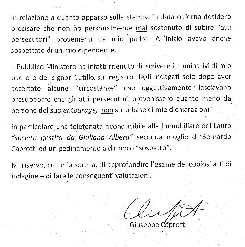 Il padre, anzi, controdenunciando Giuseppe con l’avvocato Ermenegildo Costabile, ora ottiene che il figlio sia destinatario di una conclusione d’indagine per averlo diffamato a mezzo stampa attribuendogli la cacciata da casa della madre e l’input di perizie psichiatriche in azienda.