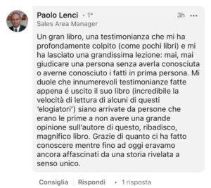 Mi duole che innumerevoli testimonianze fatte appena é uscito il libro (incredibile la velocità di lettura di alcuni di questi “elogiatori”) siano arrivate da persone che rano le prime a non avere una grande opioone sull’autore di questo, ribadisco, magnifico libro.