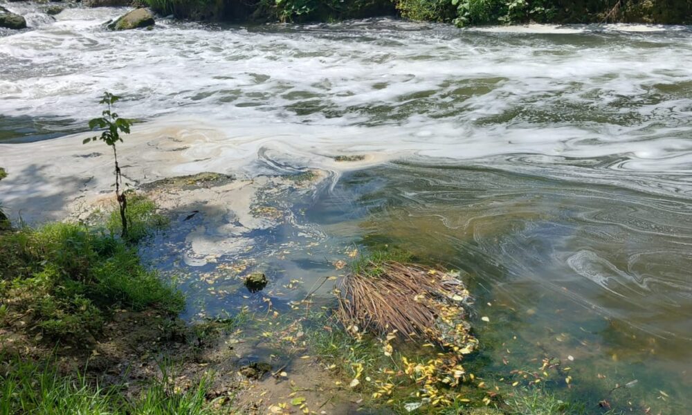 Sotto : acque inquinate nel Bormida (Piemonte).