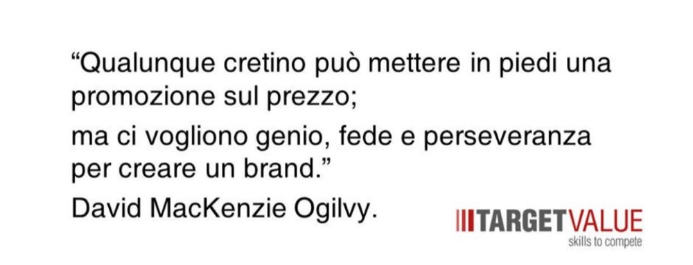 ” Qualunque cretino può mettere in piedi una promozione sul prezzo; ma ci vogliono genio, fede e perseveranza per creare un brand”.