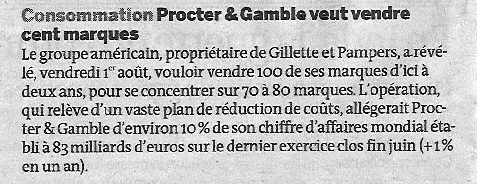 vuole vendere 100 marche e mantenerne un’ottantina che esprimono il 90% del suo fatturato pari a 83 miliardi di € (sull’anno fiscale chiuso a giugno 2014).