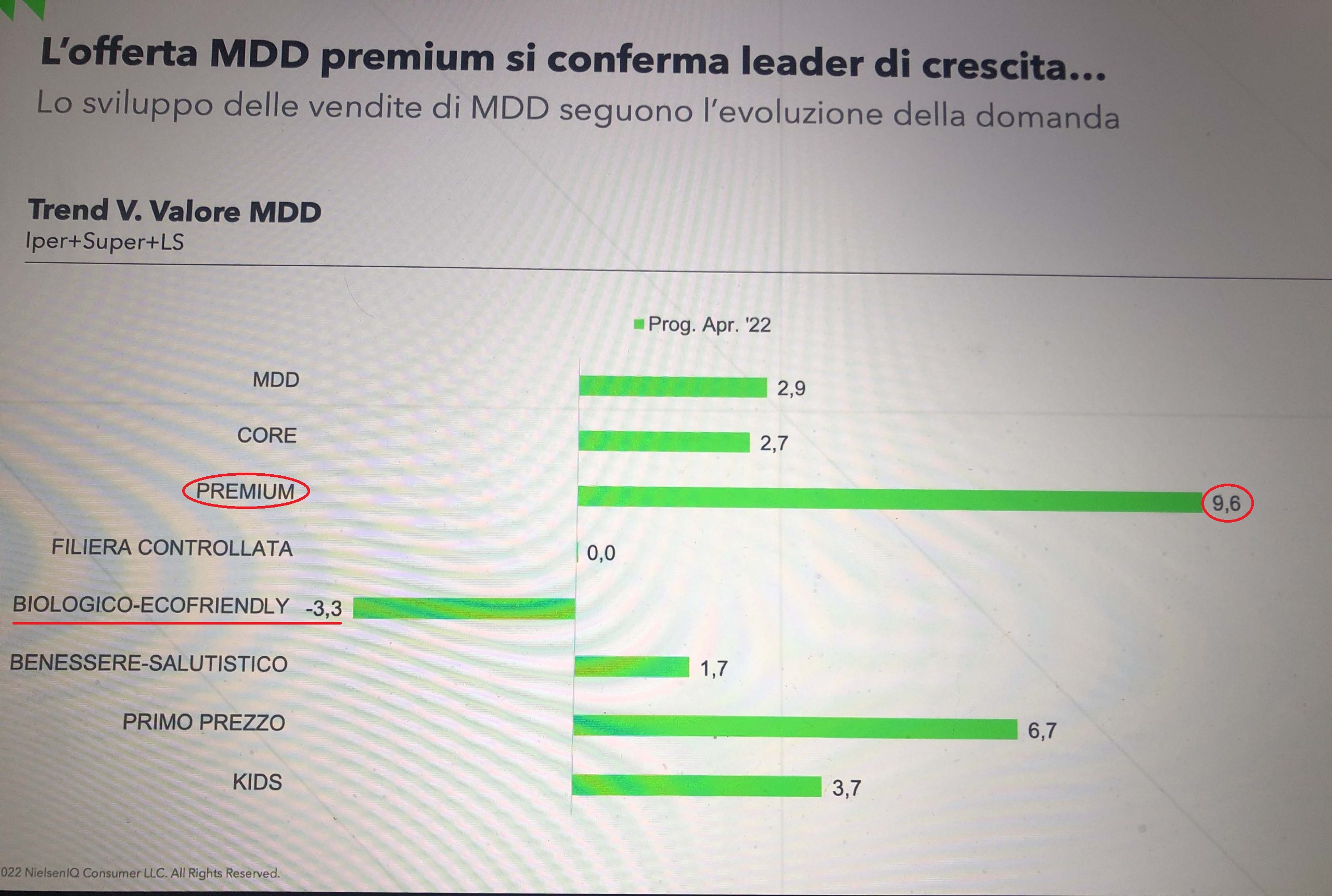 Ma chi ha detto che premium , biologico, prodotto “senza”, articolo locale (in proposito leggi NielsenIQ: il 36% dei consumatori italiani acquista più marche diverse tra loro rispetto al pre-pandemia) non possano coincidere in una linea, che contempli il bio ove è possibile ?