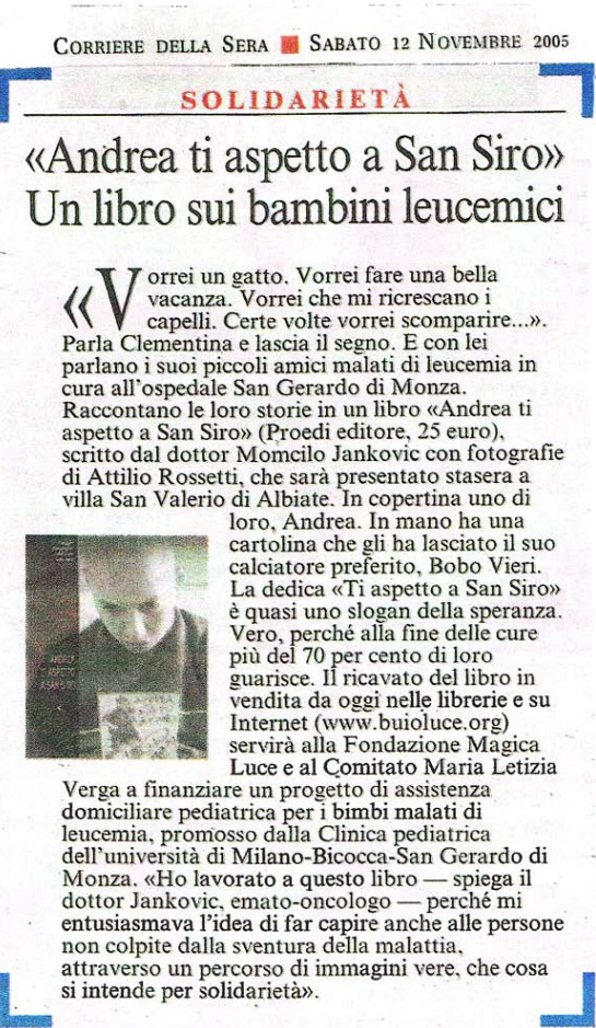 Progetto assistenza domiciliare pediatrica monzese – Corriere della Sera 12 novembre 2005