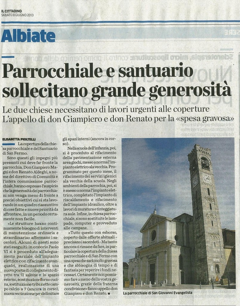 Leggo su “Il Cittadino” di Monza l’appello per la manutenzione ed il restauro di san Giovanni e San Fermo.