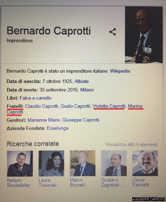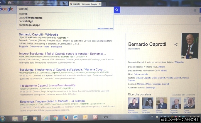 Secondo Google Bernardo Caprotti non ha figli. E il Corriere della sera non aiuta