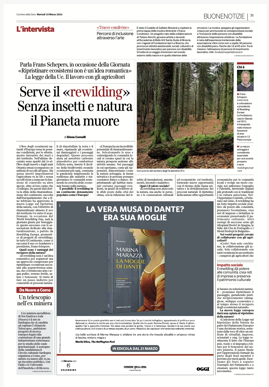 «L’Europa ha un incredibile potenziale di rinaturalizzazione. Selezionando le aree e coinvolgendo le comunità locali si creano spazi in cui la natura prospera assieme alle attività umane. Nei paesaggi in cui operiamo, come gli Appennini, dimostriamo come la natura selvaggia, la fauna selvatica e le persone possano coesistere fianco a fianco. Ripristinando gli habitat naturali creiamo paesaggi resilienti, in grado di resistere alle sfide poste dalla crisi del clima, con la riduzione del rischio di inondazioni, smottamenti, incendi e malattie».