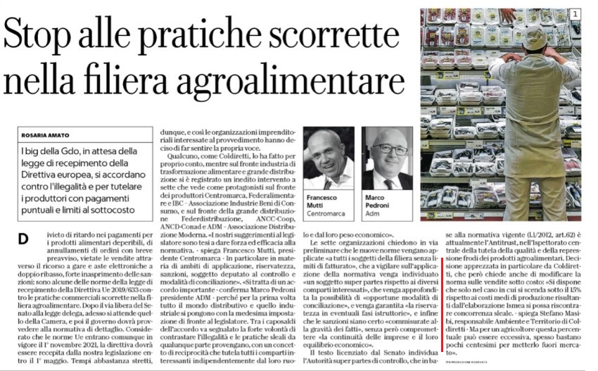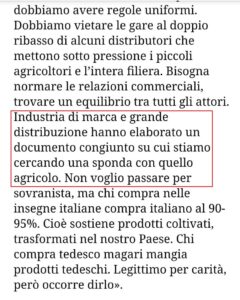 - Francesco Pugliese (Conad) il 10 dicembre 2020 sul Corriere della Sera ha dichiarato : “Industria di marca e grande distribuzione hanno elaborato un documento congiunto (sulle pratiche scorrette) su cui stiamo cercando una sponda con quello agricolo” .