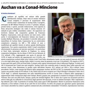 Secondo le ultime indiscrezioni- che trovano riscontro nei corridoi- la firma  verrà apposta a brevissimo. Auchan ha 9’500 dipendenti in Italia. Di Andrea Montanari, MF 10 Maggio 2019 . Grazie ad Antonio Carella