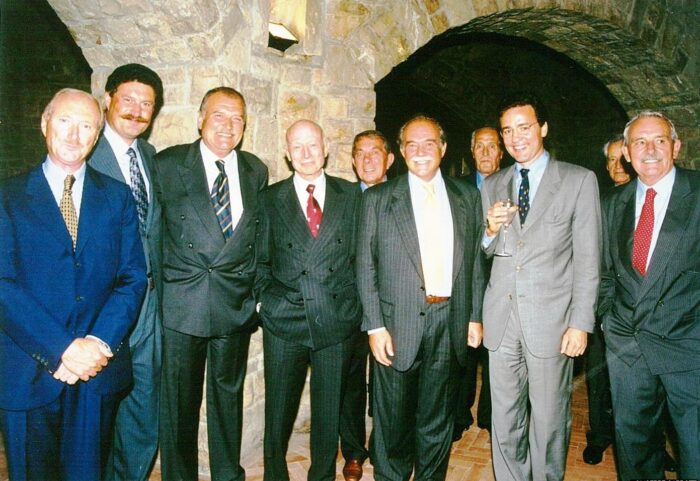 Giuseppe e Bernardo Caprotti, nelle cantine di Ca’ del Bosco, nel 2003. Tra di loro il signor Paolo De Gennis…
